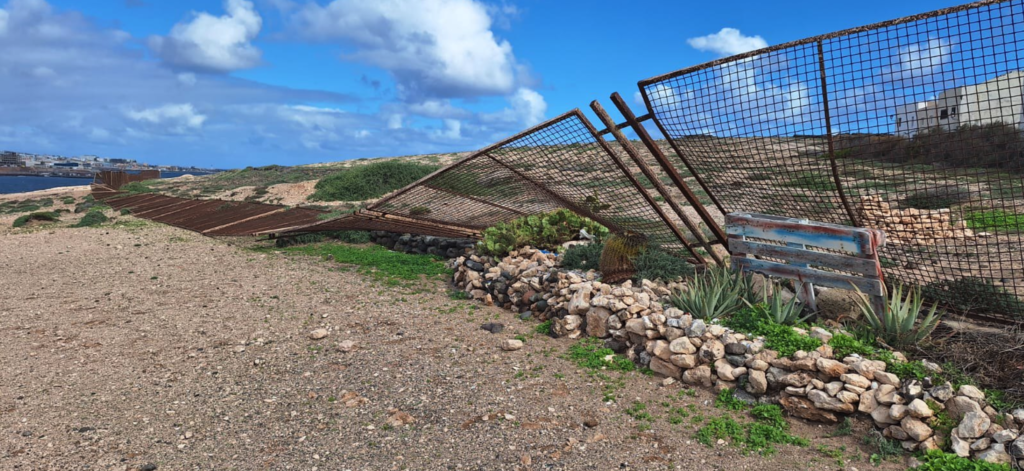 Turcón Ecologistas en Acción advierte de la caída de parte del vallado que protege el yacimiento arqueológico de Tufia, declarado Sitio de Interés Científico (SIC) y Bien de Interés Cultural (BIC).